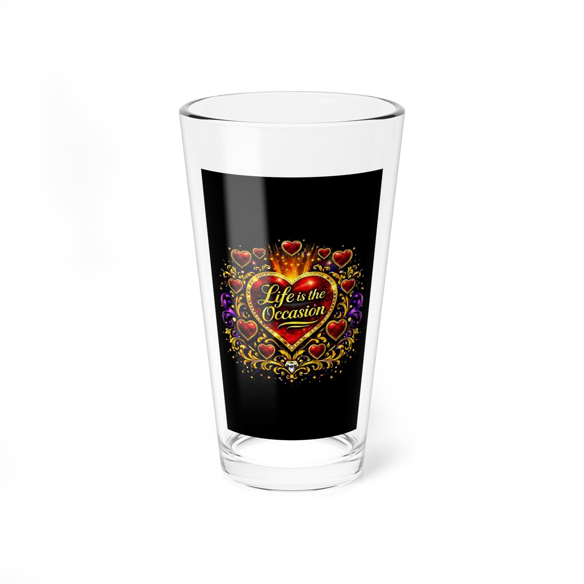 16oz Mixing Glass — "Life is the Occasion" Heart Design Cocktail Pint