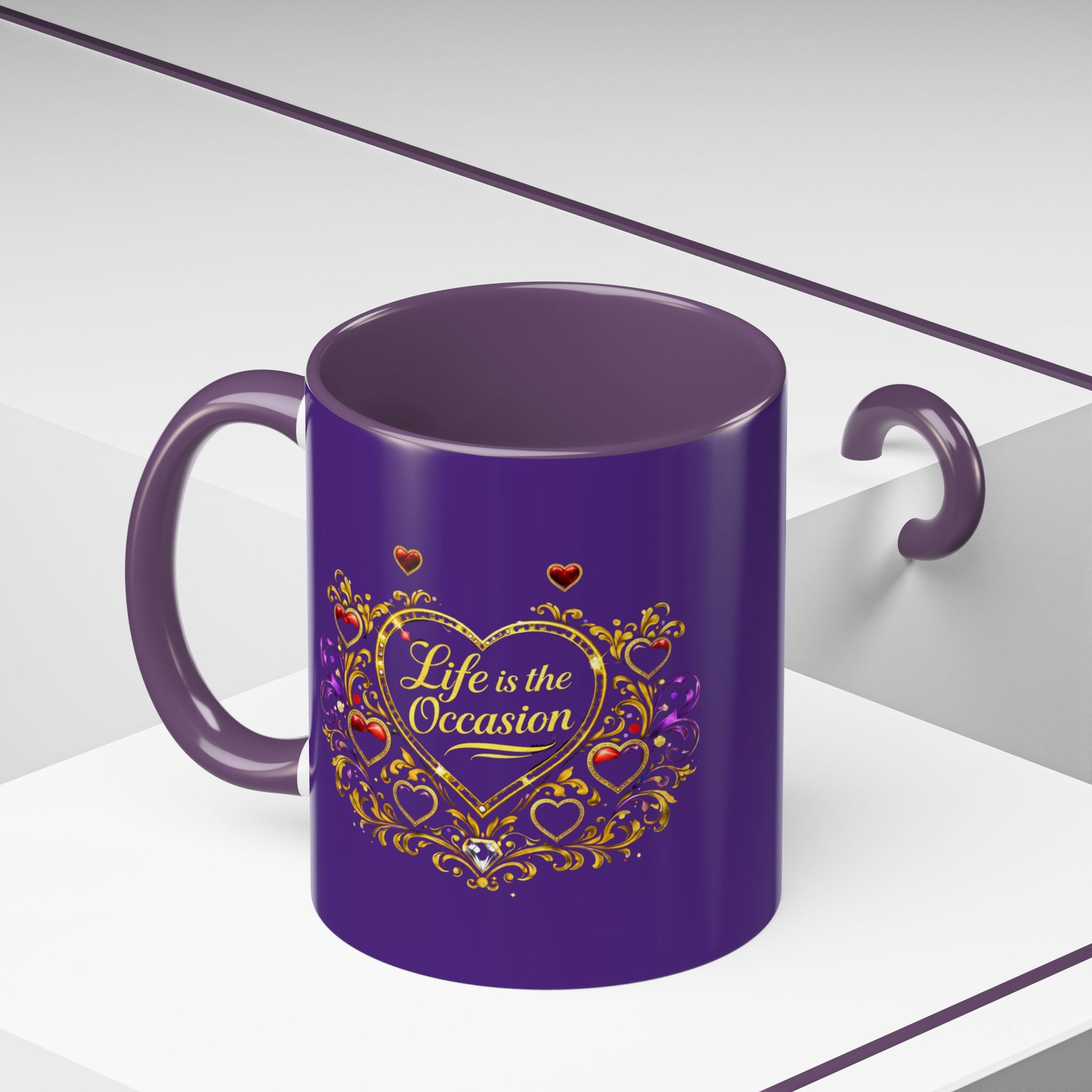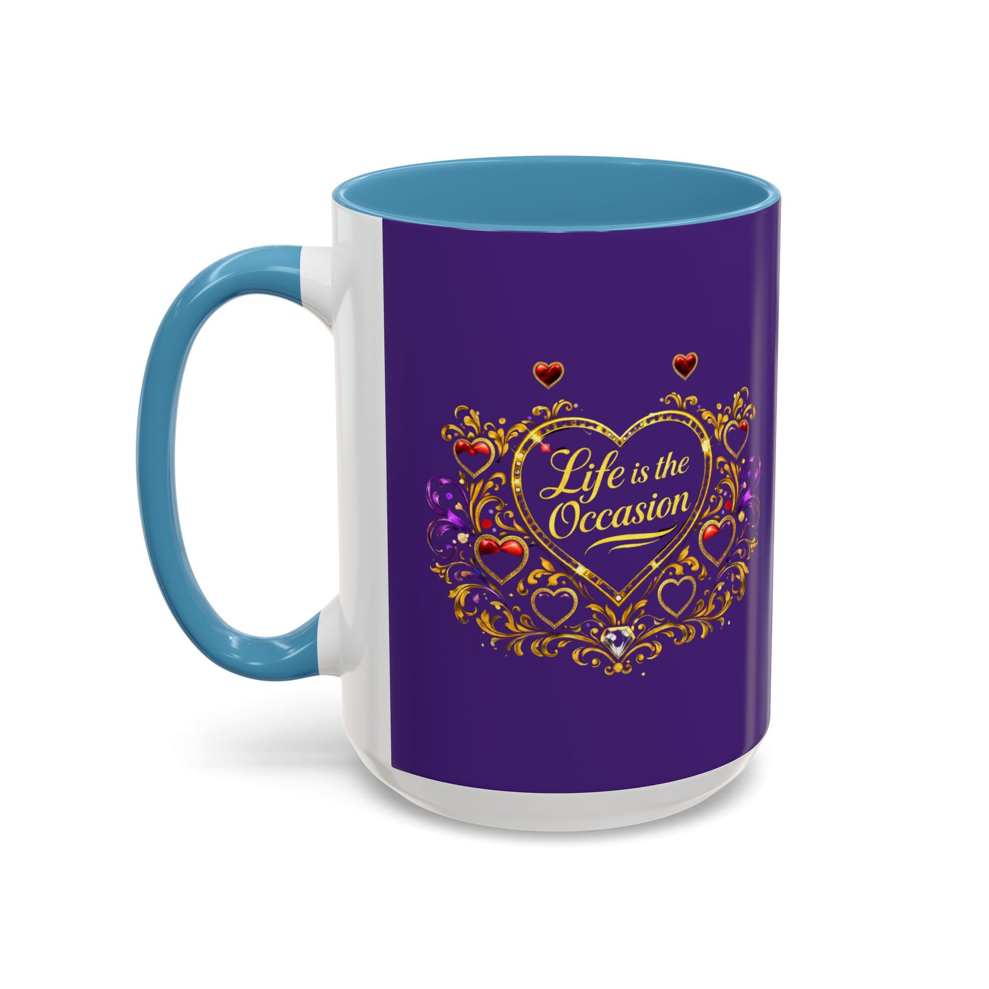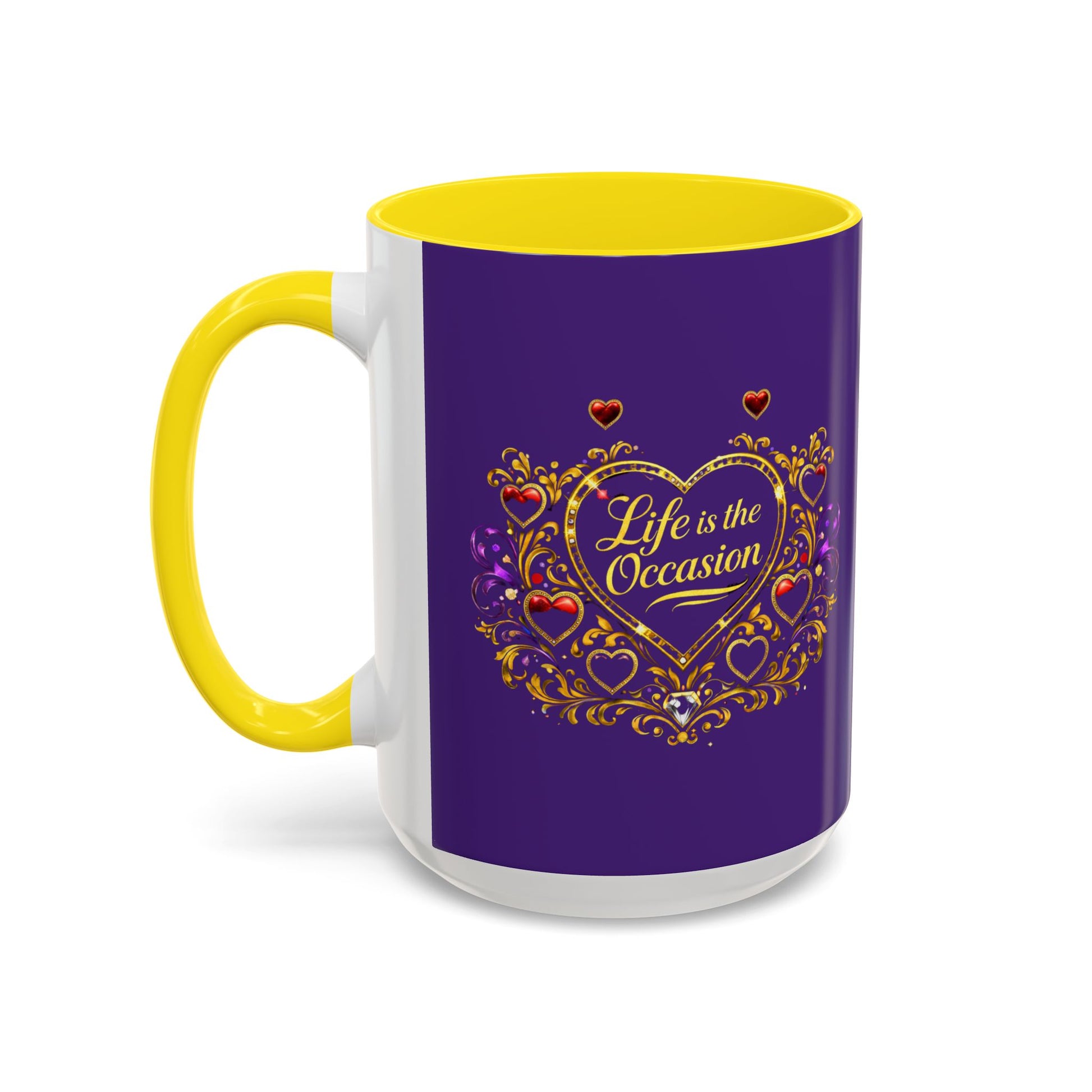 Life Is the Occasion Gold Heart Accent Coffee Mug — Inspirational Purple 11/15oz