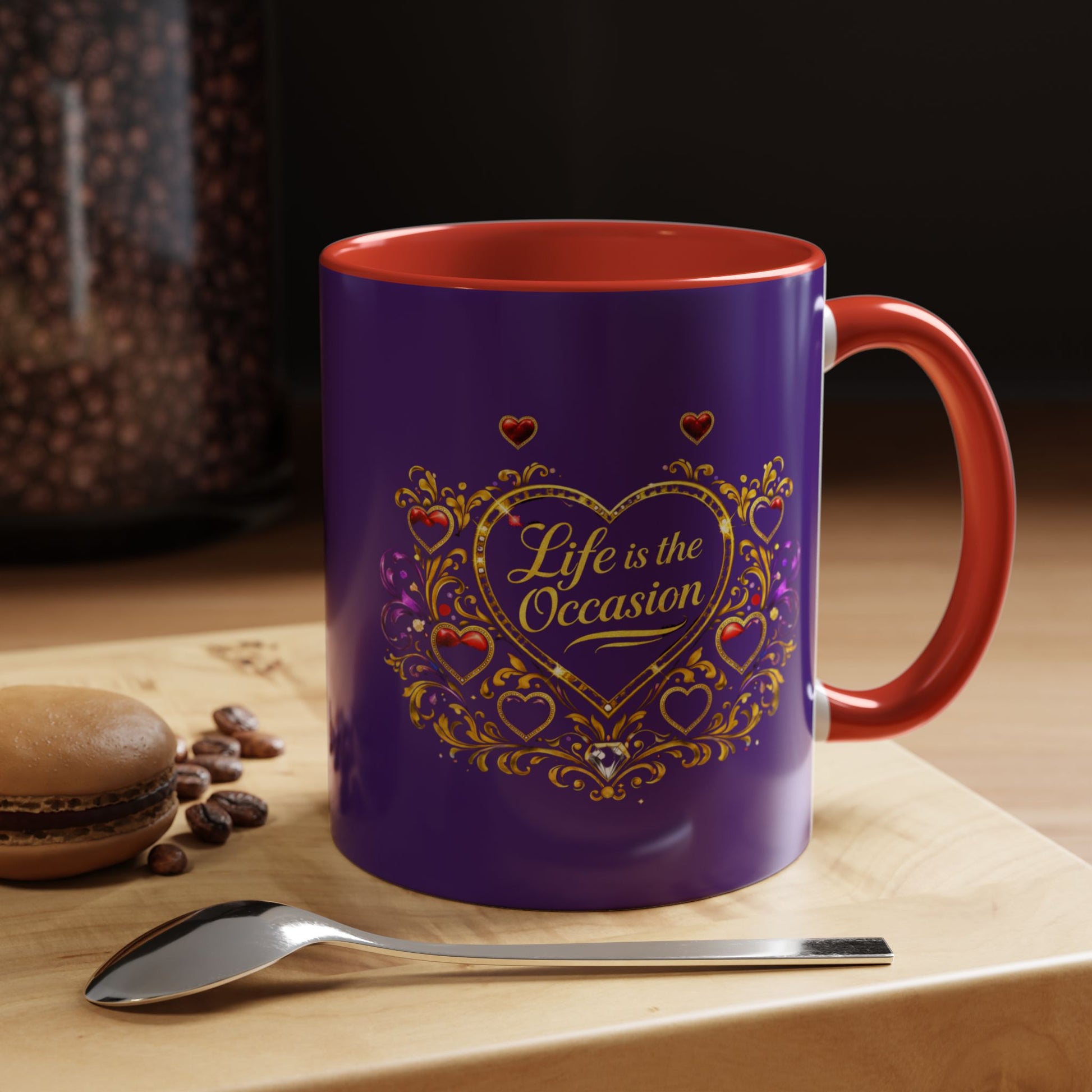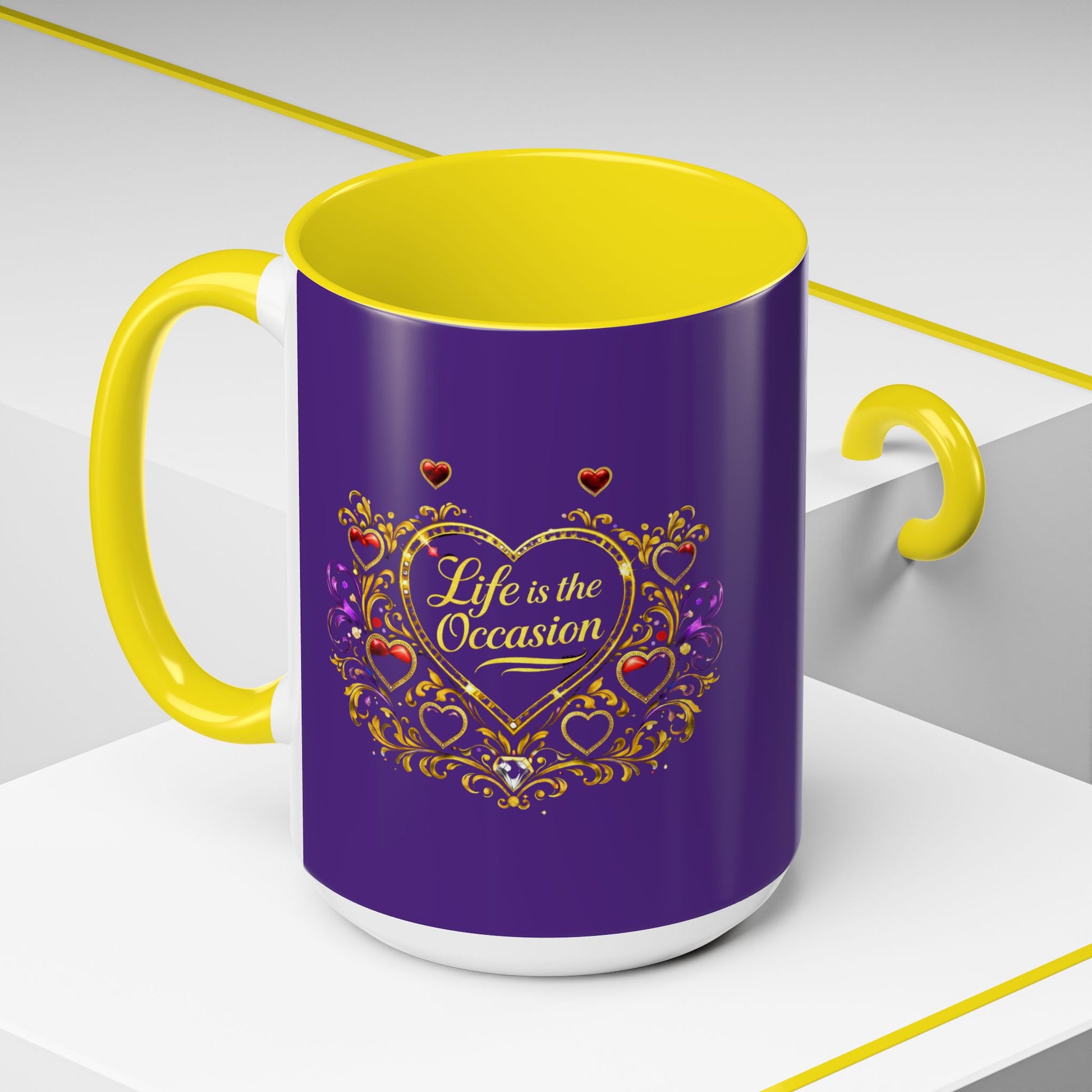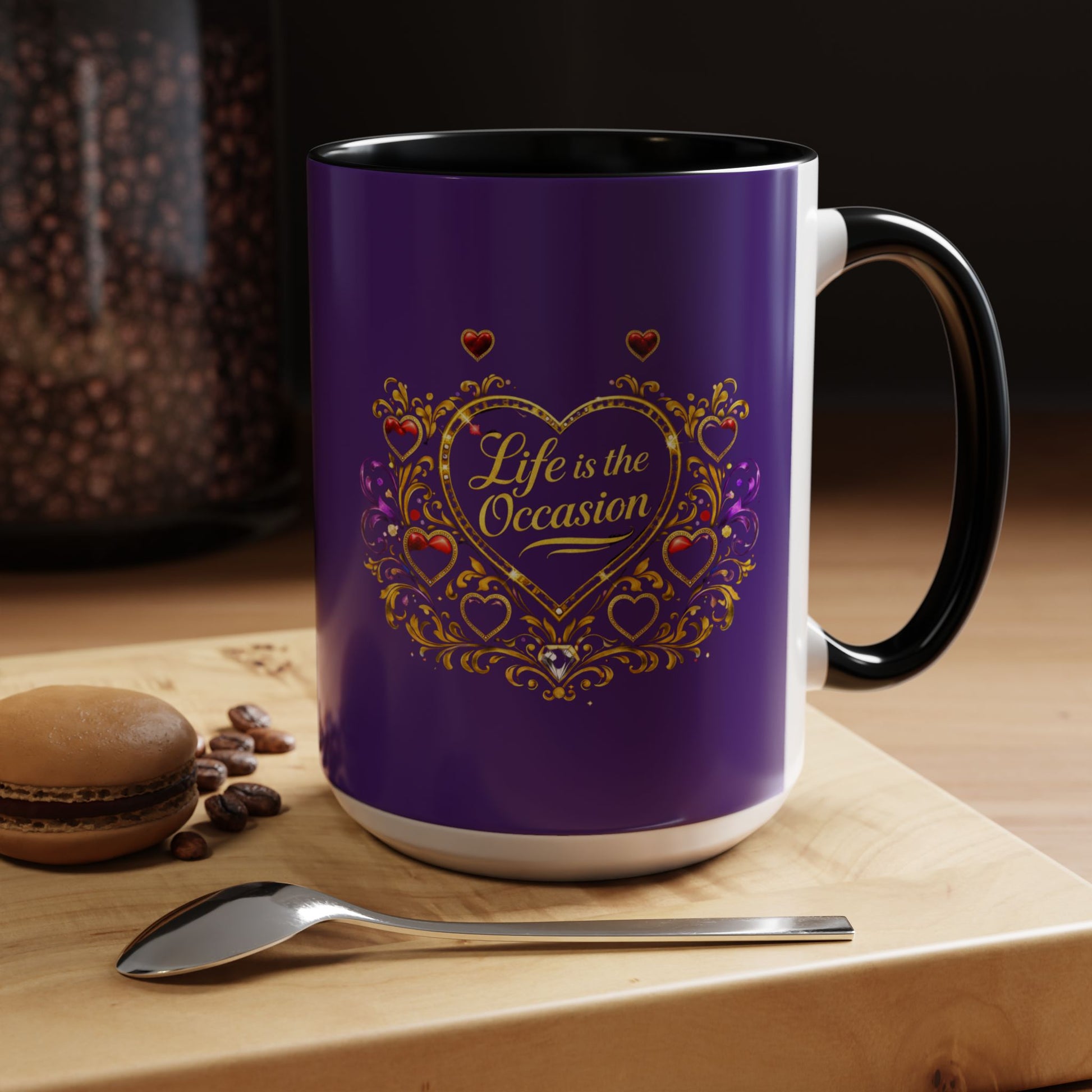 Life Is the Occasion Gold Heart Accent Coffee Mug — Inspirational Purple 11/15oz