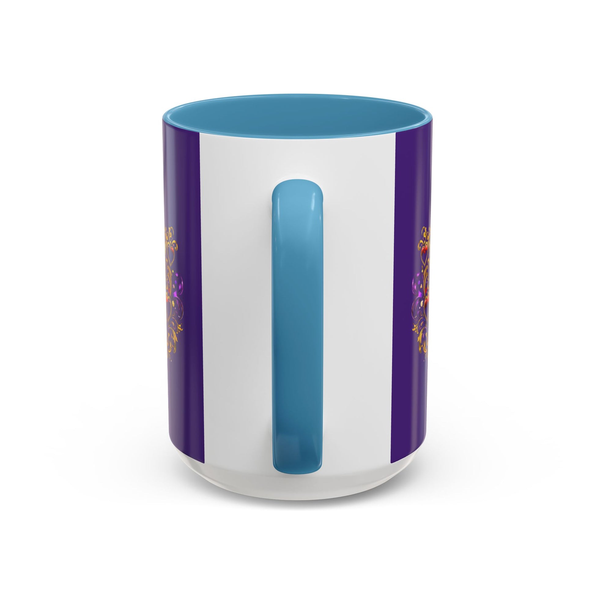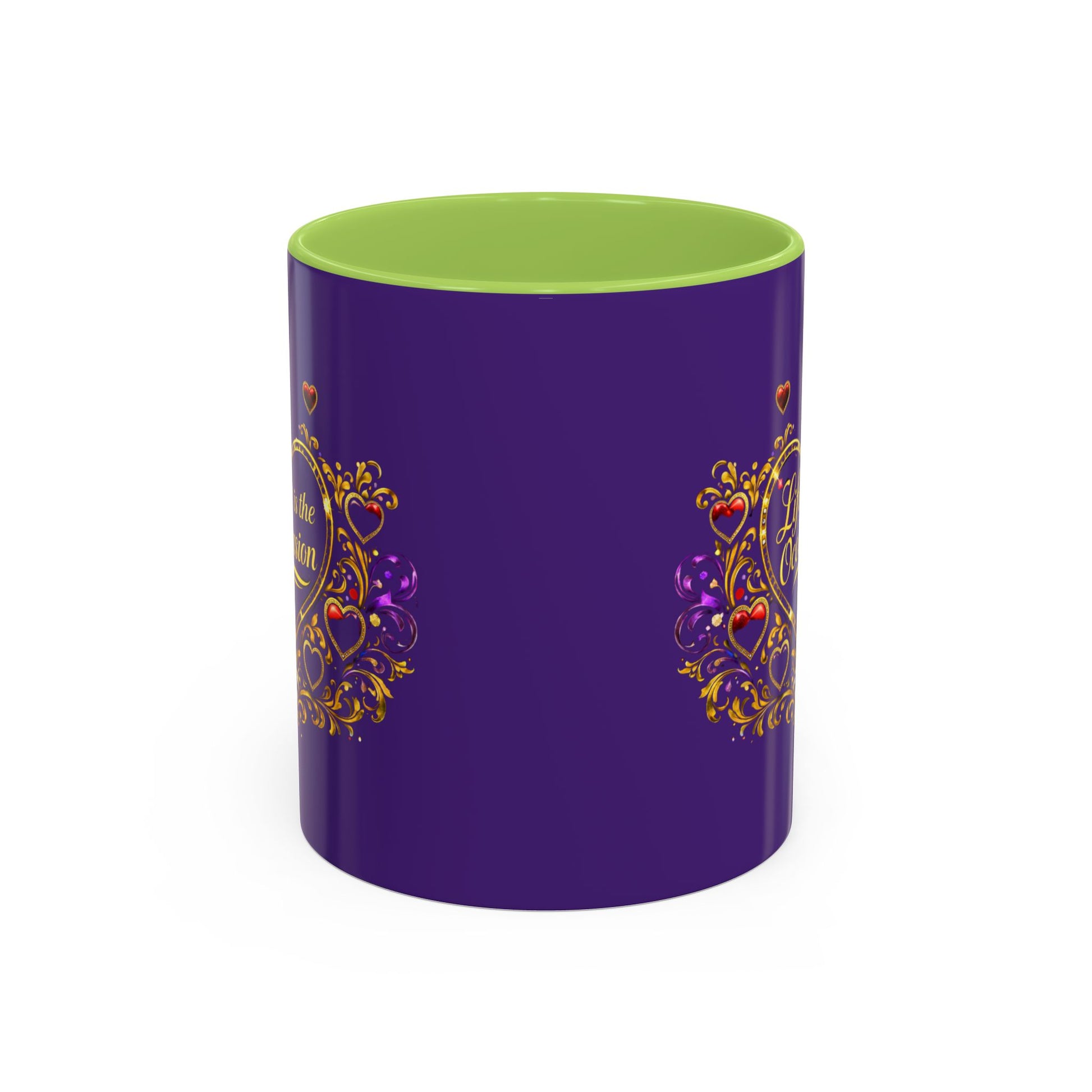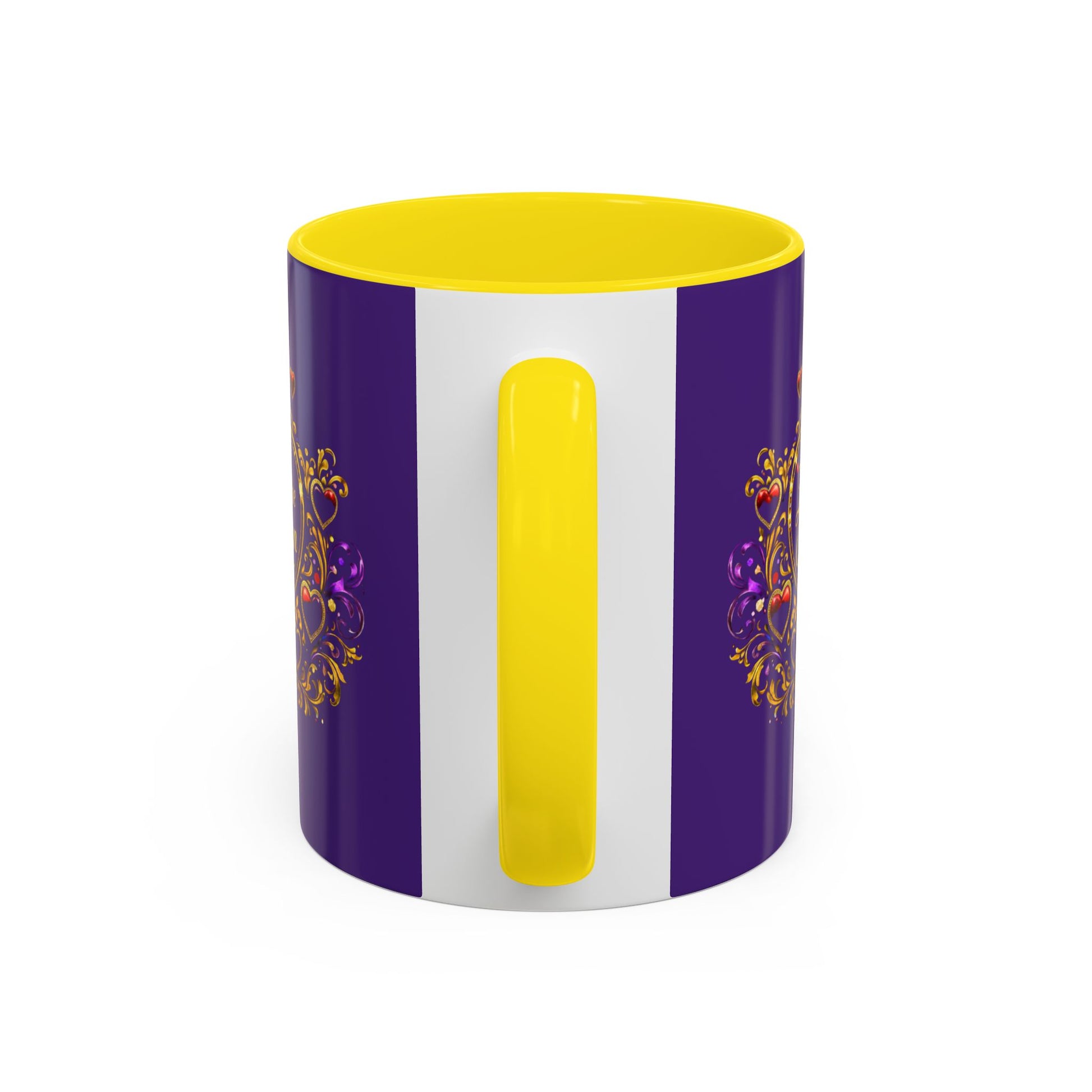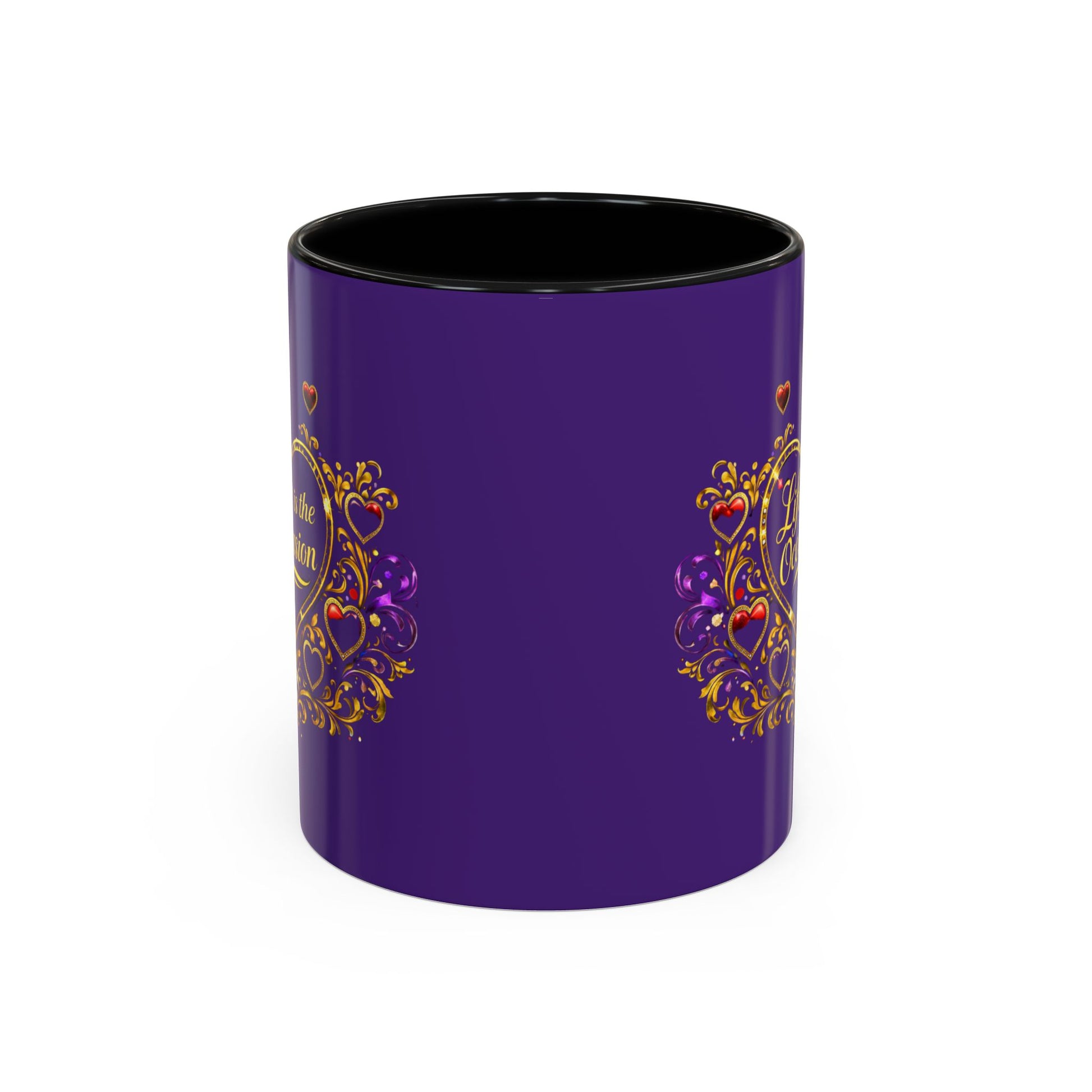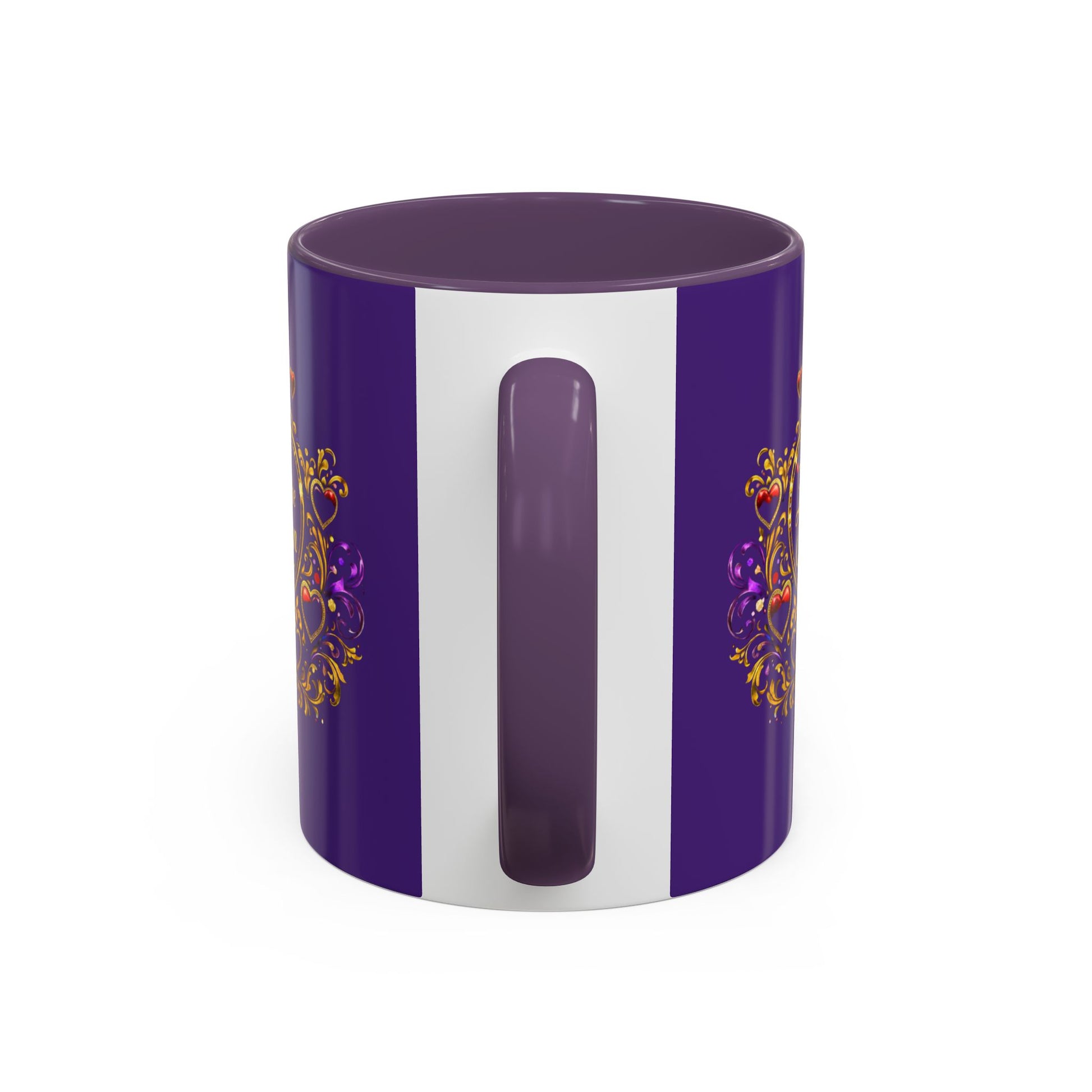 Sip from a mug that feels like a small daily celebration. Deep purple wraps the ceramic body while a glossy black interior and handle give it a refined edge. A golden filigree heart blooms on the side, dotted with tiny red hearts and swirling accents. The phrase “Life is the Occasion” sits in the center like a gentle reminder to notice small joys. Sit with it at your morning table, bring it to a mid-afternoon break, or set it on your desk to brighten a busy workday. The print’s vibrant colors stay sharp through regular use, and the comfortable C-shaped handle keeps each moment relaxed and steady.