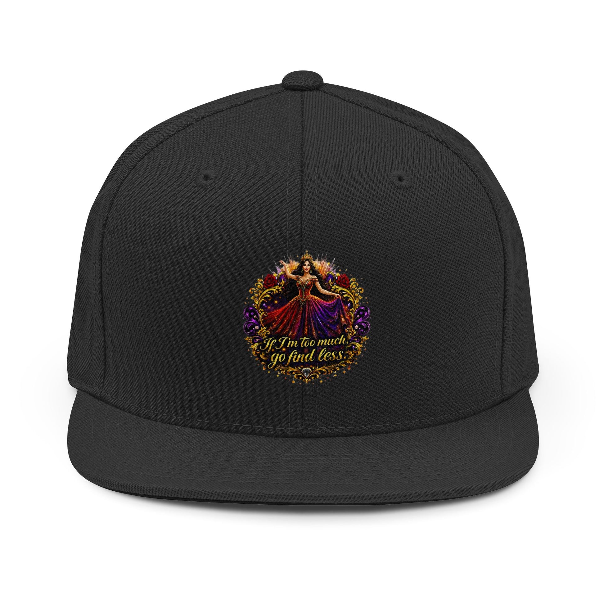 The Unisex Snapback Hat is a true fashion statement. Wearing it facing forward creates the sleekest look, but you can wear it backward too. The Snapback Hat has a flat brim which will stay that way with the crown height of 3 ¾ in. Structured, six-panel, high-profile, adjustable with the help of two snapback closure at the back of the hat. The two parts snap onto each other to fit around your head perfectly.